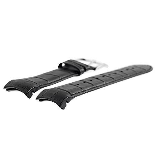 DESIGN - Ersatzarmband aus Leder in der Farbe Schwarz mit geprägter Bandoberfläche | klassisch silberfarbene Dornschließe, geprägt mit Logo