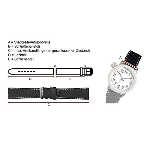 Stegbreite/Anstoßbreite: 20 mm, Schließenanstoß: ca. 18 mm, Armbandlänge: bis ca. 170 mm (im geschlossenen Zustand)