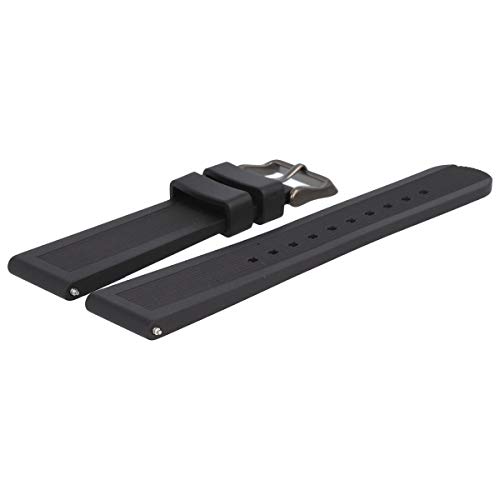 DESIGN - Ersatzarmband aus Kunststoff in der Farbe Schwarz | Silberfarbene Dornschließe | geringe Farbabweichungen können aufgrund der Eigenschaften des Uhrbandes oder wegen der Darstellung am Monitor auftreten