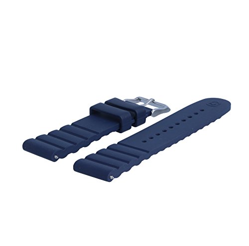 DESIGN - Ersatzarmband aus Kunststoff in der Farbe Blau mit matter Bandoberfläche | klassische silberfarbene Dornschließe, geprägt mit Logo | geringe Farbabweichungen können aufgrund der Eigenschaften des Uhrbandes oder wegen der Darstellung am Monitor auftreten