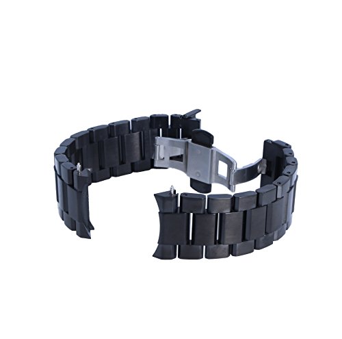 DESIGN - Ersatzarmband aus Metall in der Farbe Schwarz mit matter Bandoberfläche | klassische schwarzfarbene Dornschließe, geprägt mit Logo | geringe Farbabweichungen können aufgrund der Eigenschaften des Uhrbandes oder wegen der Darstellung am Monitor auftreten